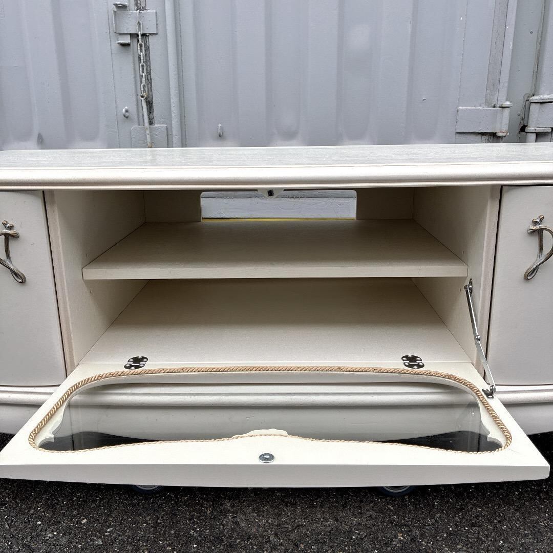 猫脚と彫刻が宿すロマン カンティーニュ ロココ調 テレビボード アイボリー 一点物