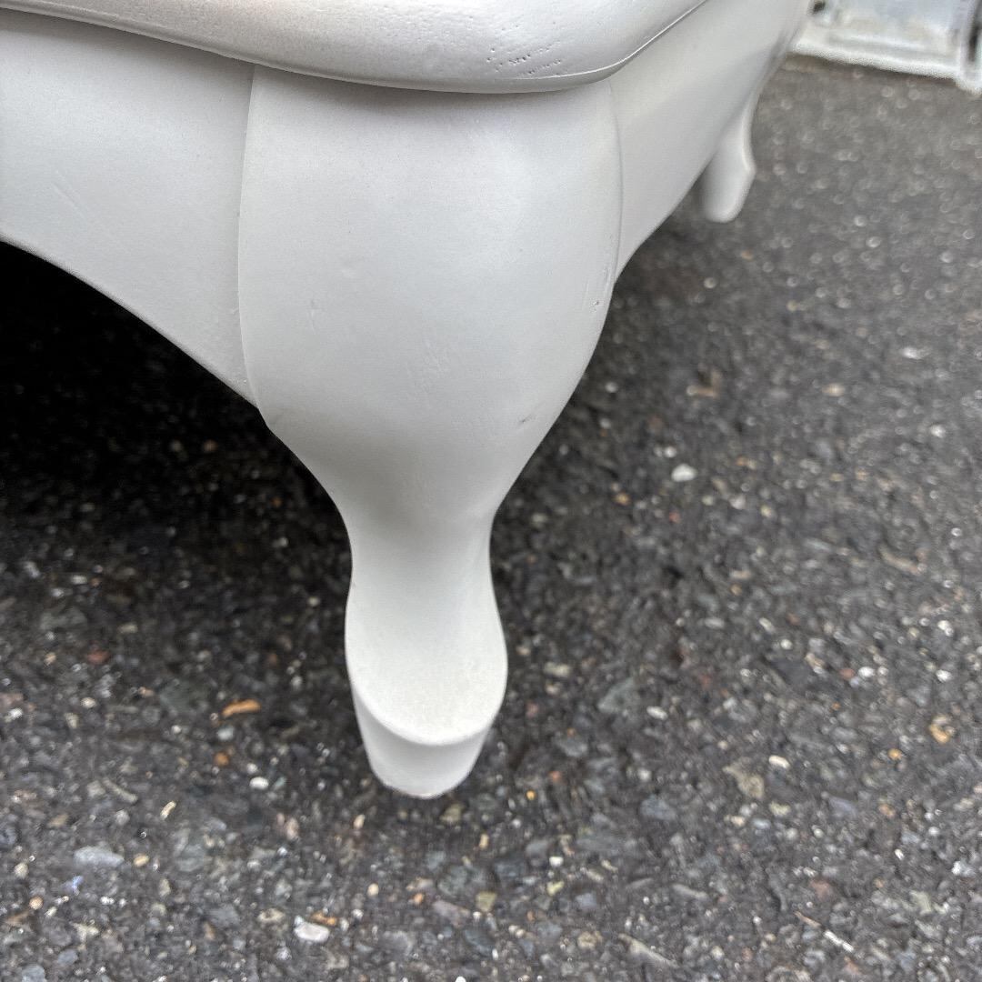 猫脚と彫刻が入った、アイボリーのクラシカルなデザイン。