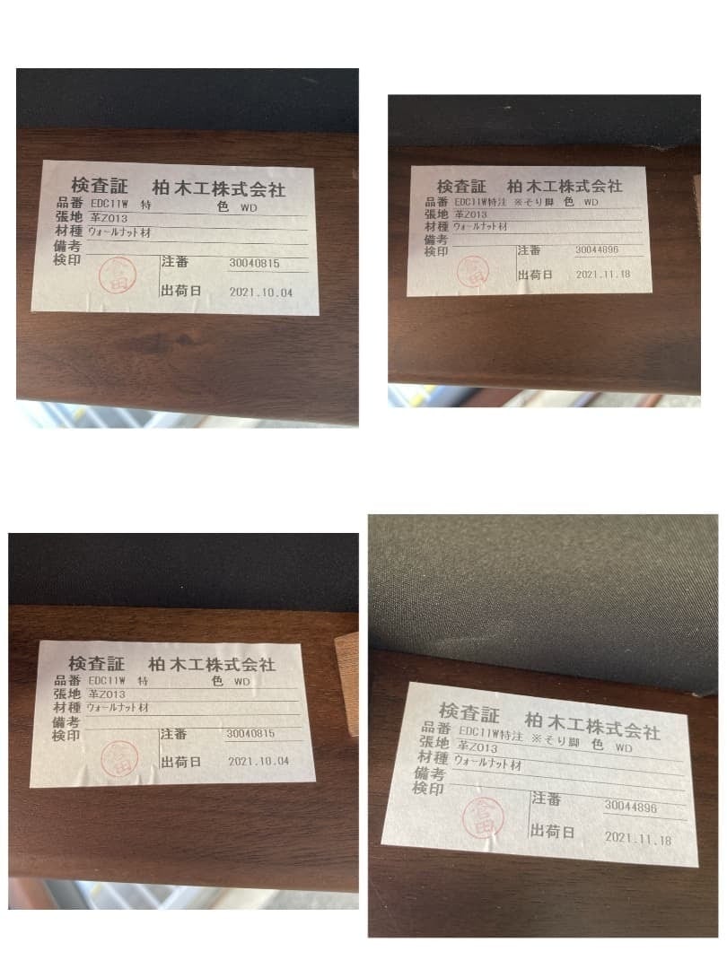生産日:2021年10月4日(2脚)・2021年11月18日(2脚)